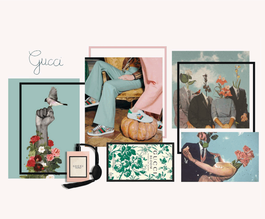 A surreal collage where nature subtly overtakes iconic forms, merging high fashion with dreamlike growth. The result is a delicate, flowing visual narrative that evokes transformation, femininity, and the unfolding of a fragrance.